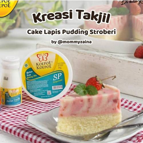 Cara Membuat Cake Lapis Puding Strawberi Bahan 1 : 2 btr Telur ayam 90 gr Gula Pasir 1/2 sdt sp merk @koepoekoepoeid 75 gr Tepung serbaguna Sejumput